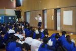 各部会からの提案をクラスごとに討議し、それを踏まえできあがったしおりを手に、1年生は学年集会で読み合わせを行いました。とてもスマートに仕上がったしおりには、校外学習の取り組みの粋がつまっています。集会では、実行委員の話を聞く表情は真剣そのもので、入学以来初めて自分たちの手で創る行事を、成功させようという学年の意気を感じました。