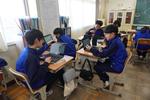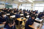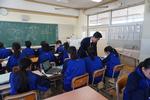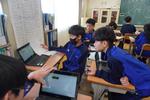 GIGAスクール端末を活用して情報活用能力を育成し、「個別最適な学び」と「協働的な学び」を一体的に充実させることが求められています。小金中でも、1年生数学で、リーディングDX型の授業に挑戦しています。教室では、本日の作図の学習課題に際し、自分なりの解決方法を様々な手段から選び取り、粘り強く学ぶ姿がありました。方法は実に様々で、タブレットを使って必要な情報を取り出したり、全員に提示されているクラスの仲間の考えを瞬時に参照したり、周りの人と協働で取り組んだり、黒板の前に集まって、先生から講義を受けたり…、10年前には存在しなかった授業風景があります。生徒一人一人のようすを見ていると、みなそれぞれの考えを持ち、「色々な方法で問題を解くのは楽しいです!」と学ぶことそのものを楽しんでいるようすが伺えました。