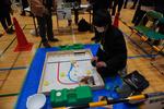 「第25回全国中学生創造ものづくり教育フェア 関東甲信越地区大会 創造アイデアロボットコンテスト」に、小金中科学部の4名が千葉県を代表して出場しました。今年度は千葉県開催で、柏市立柏中会場で大会が行われました。大会には新潟県や山梨県をはじめ関東地区の各県代表が集まり、駐車場にはマイクロバスがずらっと並んでいました。基礎部門には1年生2人、制御部門には3年生2人が出場しました。各選手は自作のメカを手に、指示された作業を時間内にいかに正確に行えるかを競います。さすが関東大会です。選手各々が細部まで工夫を凝らしたメカは高性能ぞろいで、どの試合も勝敗は紙一重でした。小金中の選手4名は、残念ながら決勝に残ることができませんでしたが、千葉県代表として最後まで粘り強く戦いました。