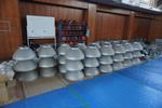 体育館に冷房を設置するための工事が始まっています。自分が子どものころには、まさか学校の体育館に冷房が入る時代がくるなんて...、想像もしませんでした。しかし、昨今の猛暑を通り越し命の危険性さえ感じる酷暑を考えると、やむを得ないことですし、ありがたいことだと思います。まずは天井の灯のLED化から工事が始まっています。床から10m以上も上にある灯が外され、床にずらっと並べてある風景はとても珍しく、間近に見るとその大きさに驚かされます。工事が終了するまでしばらく体育館が使えませんが、改良のための工事ですのでしばらく我慢です。