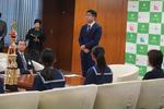 10月に行われた「第73回全日本吹奏楽コンクール」で金賞を受賞した小金中吹奏楽部3年生は、部を代表して松戸市役所を訪れ、松戸市長、松戸市教育長を表敬訪問しました。市長からは、全国大会1位に匹敵する素晴らしい賞へのお祝いの言葉と、そこに至るまでの努力に労いの言葉をかけていただきました。「小金中吹奏楽部は、松戸市の誇りです。」と最大級のお褒めの言葉をいただきました。