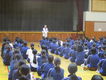 連休前の今日は午後から雨でした。午後には部活動保護者会が行われました。悪天候の中、たくさんの保護者の方に参加していただき、ありがとうございました。