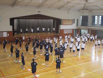 本日から3年生は修学旅行となります。朝5:30に集合して、出発しました。修学旅行の写真については、後日掲載となります。1,2年生は、いつも通り朝から部活動に励んでいます。2年生は3年生のいない間、3年生の引退後の部活運営の練習です。1年生の体育ではソーラン節を元気に頑張っていました。