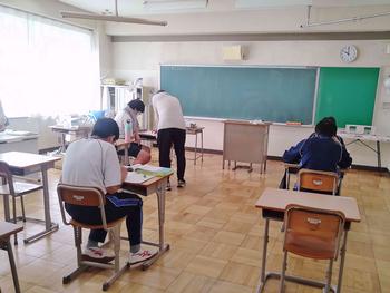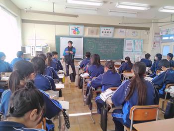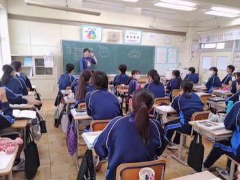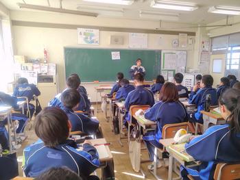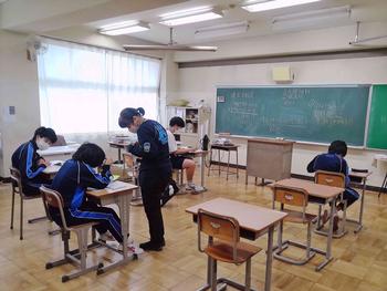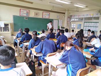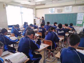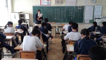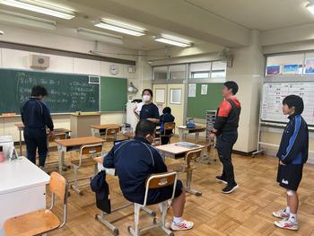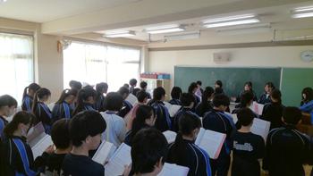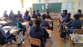 本日は、小金北小の2名の先生が他校種研修のため、小金北中にきてくれました。生徒の様子や小学校との授業の違いなどを見に来てました。1,2年生は、帰りの会で合同歌練を行いました。2年生のリーダーが中心となり進めていました。先輩が後輩に教える光景は素晴らしい伝統としてこれからも引き継いで欲しいと思います。