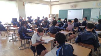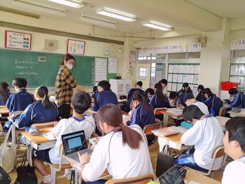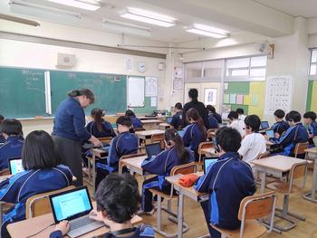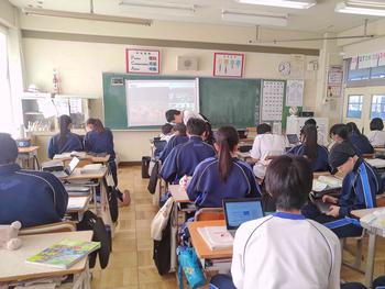 3年生は今後、合唱する曲に関する動画を見ました。東日本大震災に関する動画でした。合唱曲のできた背景などを知るとより一層素晴らしい合唱になると思います。5組は北アメリカの自然と農業について学びました。昔とは異なり、インターネットを使うと情報をすぐに得ることができる世の中です。情報の出所などをきちんと確認し、上手に活用して欲しいと思います。