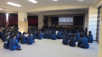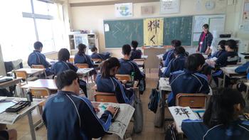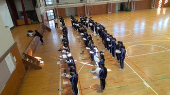 2学期もいよいよ明日で終わりです。今日は学期末の学年集会が行われました。代表生徒が各クラスの2学期の成果と課題を発表しました。休みの間の生活や学習のこと、3年生は進路の話を真剣に聞いていました。また、愛校作業(大掃除)では、自分たちが使用した教室やトイレ、廊下・階段等を感謝の気持ちを込めて清掃し、学校はとても綺麗になりました。