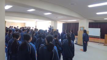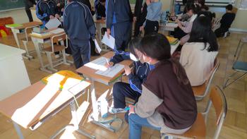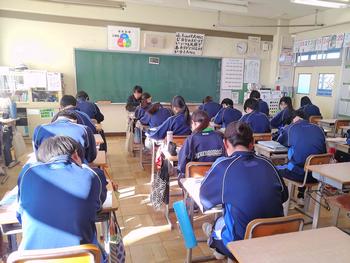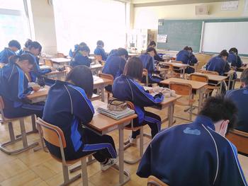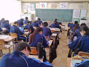 3学期が始まって2日目です。生徒たちはどの授業もしっかりと取り組むことができました。また、今日は避難訓練を行いました。山陰地方では大きな地震が発生しています。いつ起こるかわからない自然災害への対応訓練が大切だということを改めて考える一日となりました。
