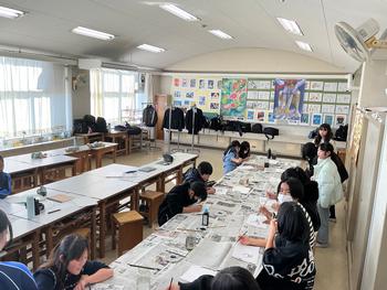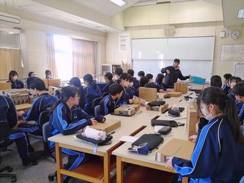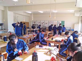 今日は寒波の影響で寒い一日となりましたが、生徒たちは元気にいっぱいです。どの教室でも意欲的に授業に取り組むことができました。また、東葛飾地方家庭科、技術・家庭科作品展に4名の生徒の作品が出品されました。