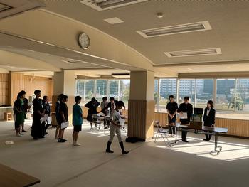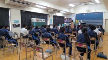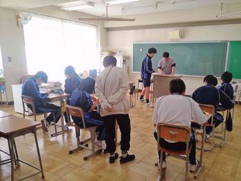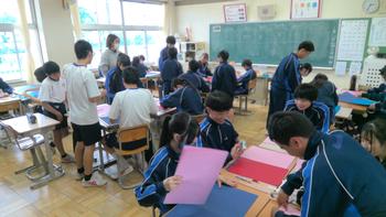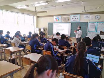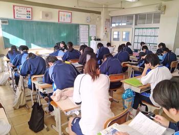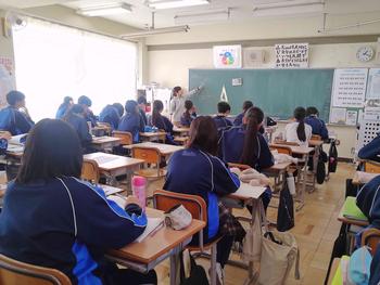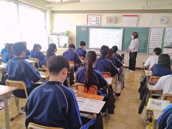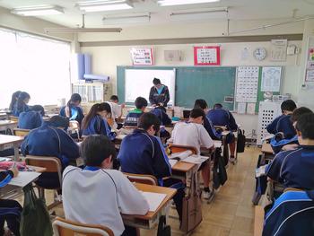 本日、1年生は校外学習でした。朝、電車のトラブルもありましたが大きなトラブルもなく、みんな無事に帰ってきました。写真については、後日掲載予定です。2年生は千葉大留学生との授業を実施しました。学んだ英語と生の英語に戸惑いつつも、貴重な体験ができました。3年生は、合唱練習に励んでいました。5組は学区にある本土寺とその周辺の散策にいきました。