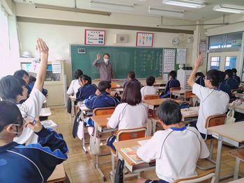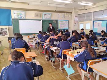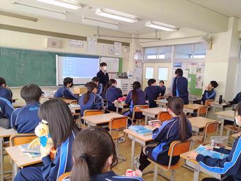 本日は、5組体験交流会に小金北小と殿平賀小の生徒がきてくれました。始めは小学生も中学生も緊張する様子が見られましたが、様々な活動を通して、交流を深め、お互いに笑顔で交流会を終えることができました。1年生は明日の校外学習に向けて、事前集会を行いました。3年生の道徳の時間では東日本大震災の題材でした。次の3月で15年が経ちます。日本人として、忘れてはいけないことの一つかと思います。ぜひ、お家でも話をしてみてください。