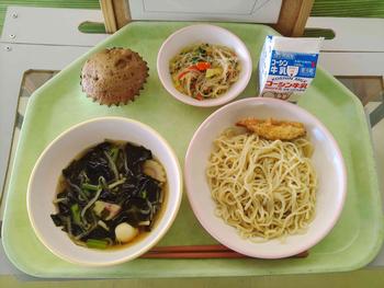 今日のメニューは、わかめラーメン、わかさぎのフリッター、春雨サラダ、中華風蒸しパンでした。