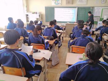 学校では3年生は入試と学年末テストに向けて、どのクラスも真剣に授業に取り組んでいます。1,2年生は送る会の練習や週末に実施される1年生校外学習に向けて準備を進めています。火曜日も北中生は元気です。