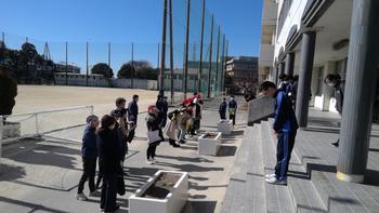 寒い日が続いていますが、朝のグランドでは一所懸命部活動に取り組む北中生が見られました。1年生は今週末の校外学習に向けて係り別集合を行っていました。2年生は何かを作成し、練習をしていました。3年生は午後公立入試の資料の点検のため給食後下校となっています。先生方は前松戸市教育長の伊藤先生をお招きし、研修会を行いました。生徒も先生方も一生懸命学ぶ姿が多く見られた一日となりました。