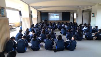 今日の6時間目、1年生は今月末に実施される校外学習についての集会が行われました。実行委員を中心に準備を進めています。当日が楽しみです。