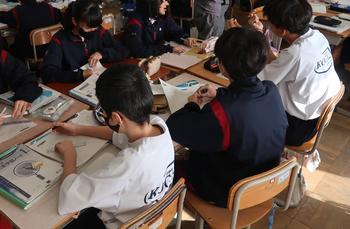 国語の授業では物語に書かれていない登場人物の心情を考えています。う~ん、深いわ~