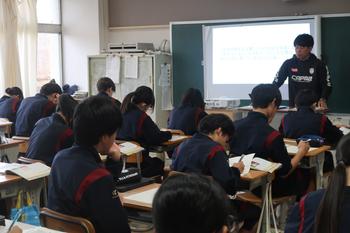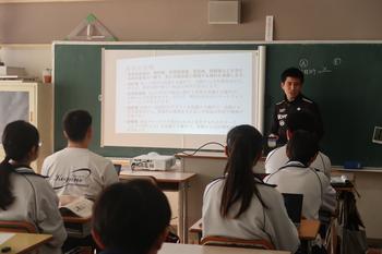 道徳の授業です。このクラスは元Jリーガーの長谷部選手のお話です。試合に出られない悔しさを人のせいにしていた自分を改めることで成長した話です。