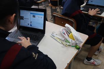 国語の授業ではそれぞれプレゼンのための資料や原稿を作成しています。