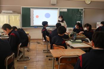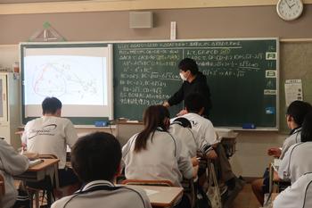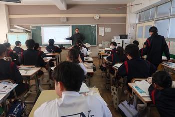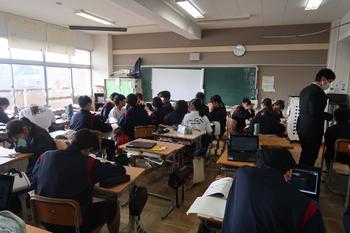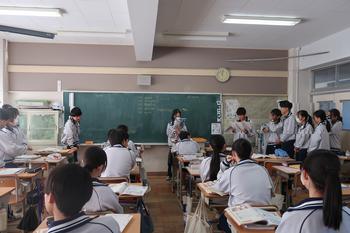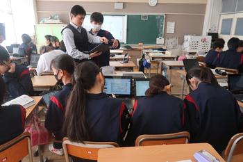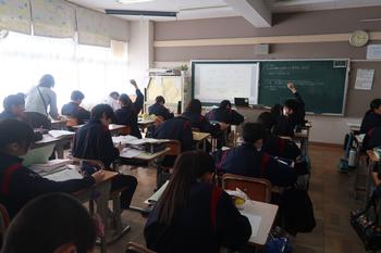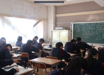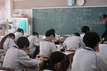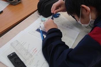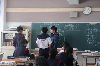 数学では証明問題に取り組んでいます。わからない所があって先生に聞きにきたのでしょうか。そうやって解決していくことが大事だ。