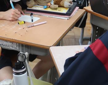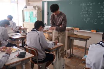 数学の時間に入試問題にチャレンジしています。疑問に思ったところはどんどん先生に質問するんだよ。