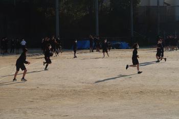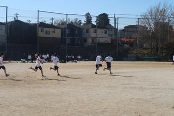 体育の授業での持久走の様子です。力を抜かず一生懸命でえらいです。
