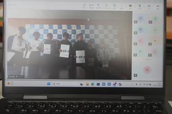 新人戦でも好成績を収めています。今日は表彰集会です。体育館の工事は終わったのですが、風邪などが広がっていかないようにリモートにしています。