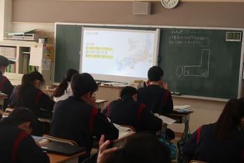 社会科の授業です。徳川幕府が勢力を伸ばしていった背景を学習しています。