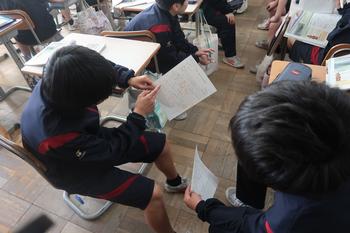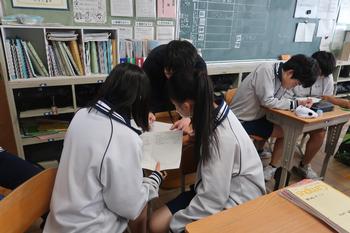 国語で群読というものをやります。グループで役割分担して読むんですね。どうやって読むのがいいのか、グループで相談しているところです。