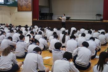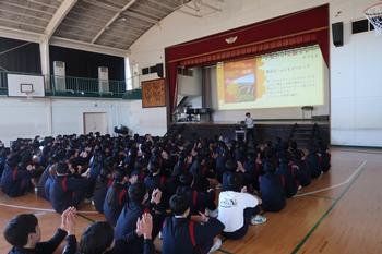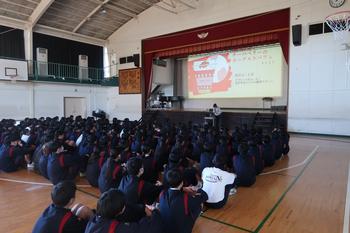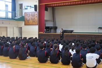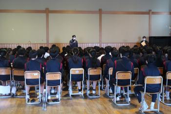 学年集会では2学期の学校生活を振り返って、3学期に頑張ってほしいことについて先生から聞いています。