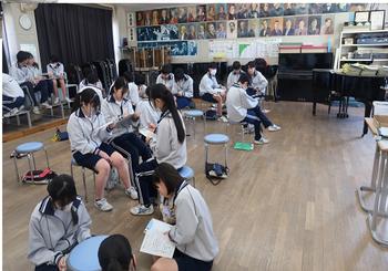 音楽の授業では曲に合わせた詩を各自で考えています。いい詩が浮かんだかな・・・
