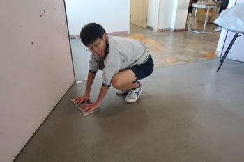 今日は2学期末の大掃除です。教室の机イスを廊下に運び出してワックスをかけます。
