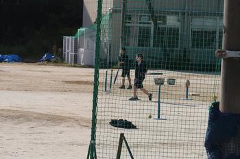 体育はソフトボールの授業です。バッティング練習の場面です。いいスイングです。ボールはどこまで飛んだか?!!。
