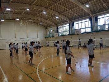 体育の授業は空調が効いた快適な体育館でバドミントンです。受験勉強で疲れた頭もスポーツでリフレッシュです。