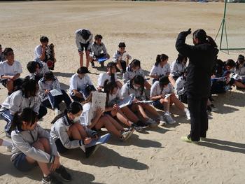 今日の体育は長距離走、20分間走でした。みんな一生懸命走って、記録のまとめをしています。