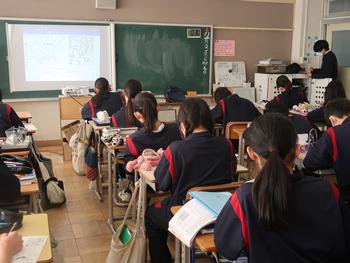 理科の授業では天気図を見ながら、気圧配置について学習しています。天気の予測ができるようになるといいな。