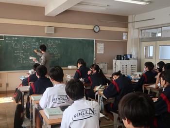 数学の授業は立体の体積を求める問題。どこを底辺、どこを高さにするかがポイントです。頭の中で図形がグルグル・・・