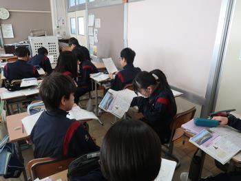 国語の授業では走れメロスの学習をしています。体調不良者が多く、空席が目立ちますね。