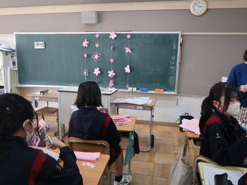 「3年生を送る会」の準備も進んでいます。わぁーきれいだな。これは装飾を作成しているところですね。