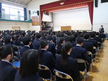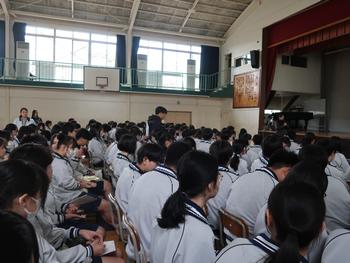 学年集会で命の授業を行いました。何よりも大事な命のお話です。自分の命も、ほかの人の命も大切にして、これから人生を生きていってください。