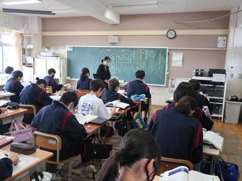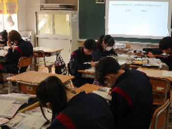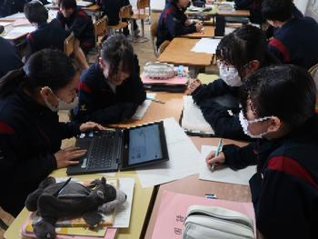 国語の授業では、ヘルマンヘッセの「少年の日の思い出」のあらすじをまとめています。登場人物の関係などを図にして確認しているところです。