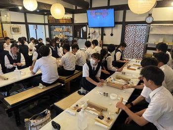家庭科の授業では和服について学習しています。自分の好きな色にデザインしています。