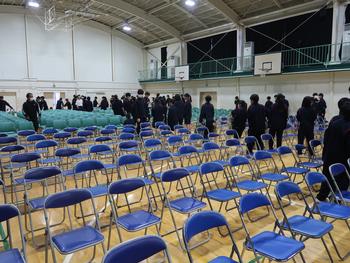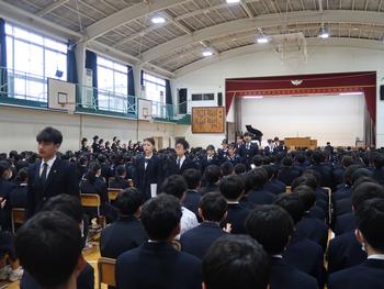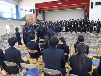 南中は、施設の関係で、卒業式の当日は在校生は参加できません。なので、予行練習に当たる日を全校卒業式として、本番さながらに行います。