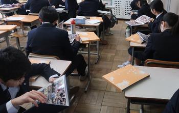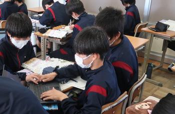 国語の授業では、ヘルマンヘッセの「少年の日の思い出」のあらすじをまとめています。登場人物の関係などを図にして確認しているところです。