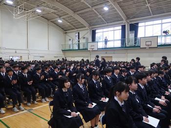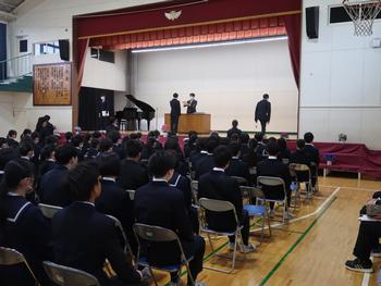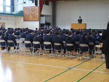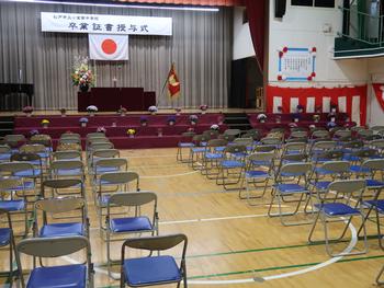 全校生徒による卒業式です。3年生も1,2年生も立派な態度でした。