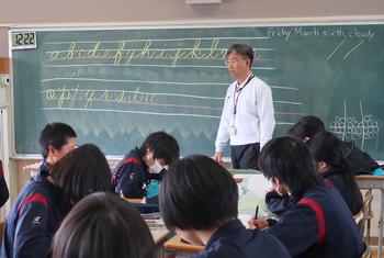 英語の授業の様子です。おっ!!筆記体の練習ですね。これから先、英文でお手紙を書く時などに使うかもしれません。