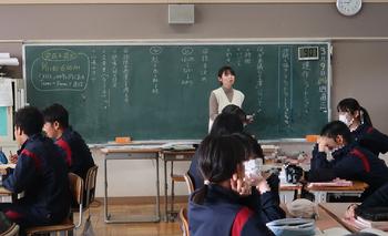 数学の授業では、先生の代わりに生徒が問題の解説をしています。頑張ってるね~。