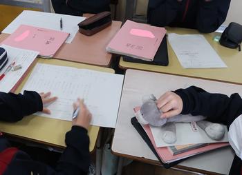 社会科の授業では中国が明と言われてた時代の学習をしています。みんなで調べ学習をしているところですね。その時代、勘合符というものを使って、日本と明が貿易をしてたそうで。勘合符ってどんなものなんだろう???