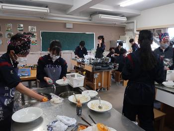 今日は時間割が変更になって、5,6時間目が家庭科の調理実習になりました。今日作ったのは災害時でも作れるサバカレーです。