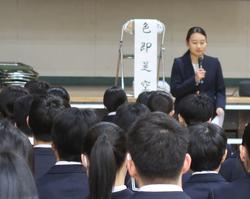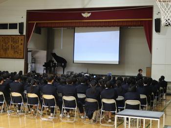 学年集会で命の授業を行いました。何よりも大事な命のお話です。自分の命も、ほかの人の命も大切にして、これから人生を生きていってください。
