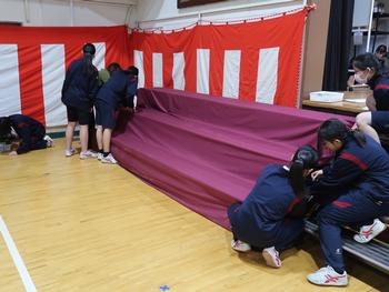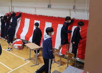 紅白幕を取り付けるぞ!! せっせ、せっせ・・・