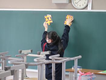 教室の飾り付けも終わりました。卒業生の皆さん、明日は幸せな一日を。
